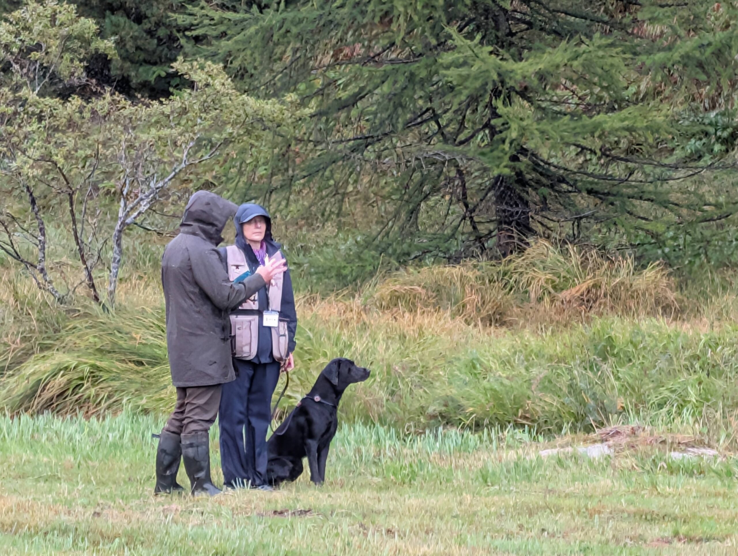 Es wird erwartet, dass im Schnupper-Mock Trail Seminar (Niveau Beginner) der Hund aufmerksam und ruhig (Steadiness) neben seinem Führer verbleibt sowie sauber in die Hand apportiert.